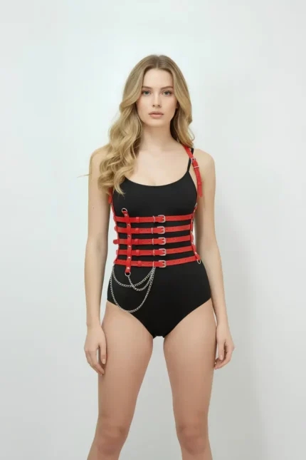 Looking for a complete transformation? Pair your belt with a full body harness or style it over a daring leather skirt for maximum impact.