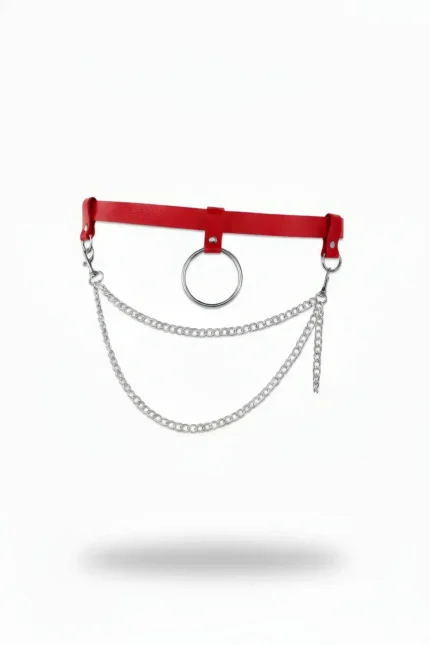 Red Women’s Belt with Double Chain and Metal Ring Detail – SH923