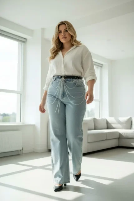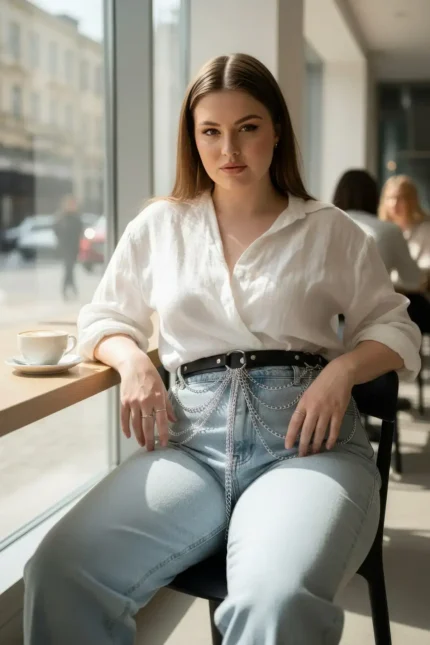 Women’s Leather Belt with Body Chain Accessory – SH620