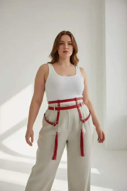 Red Women’s Belt with Ring Detail Body Belt – SH107