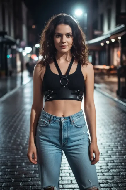 28,9 $Black Women’s Leather Harness with O-Ring Detail – SH20
