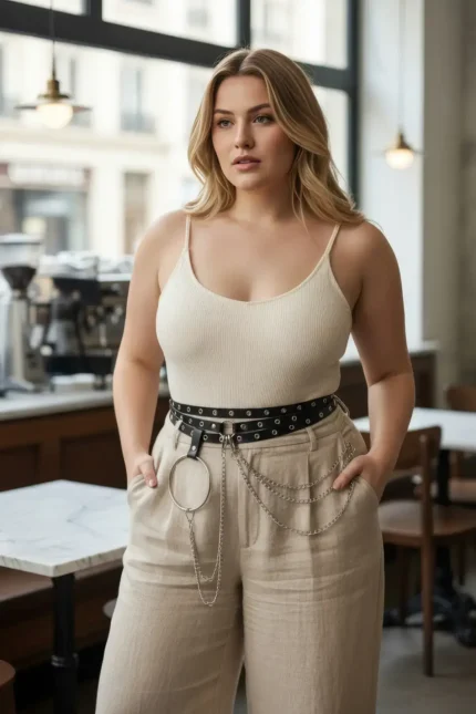31,9 $Plus Size Black Women’s Belt with Chain and Ring Detail Outfit Complementary – SH731