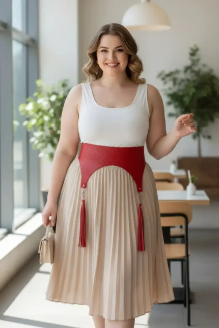 35,9 $Plus Size Red Women’s Leather Corset Design with Belt and Tassel Detail – SH755