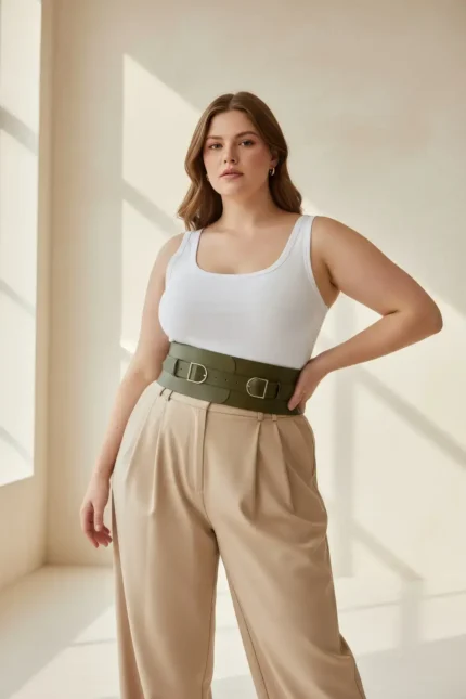 31,9 $Plus Size Khaki Women’s Wide Waist Belt Corset with Double Buckle Detail – SH875