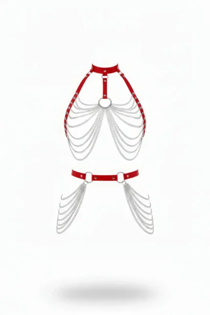 Red Women’s Leather Body Accessory with Belt and Chain Detail – SH701