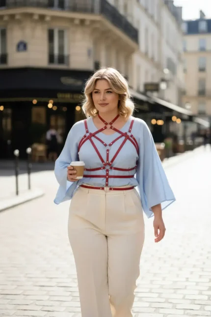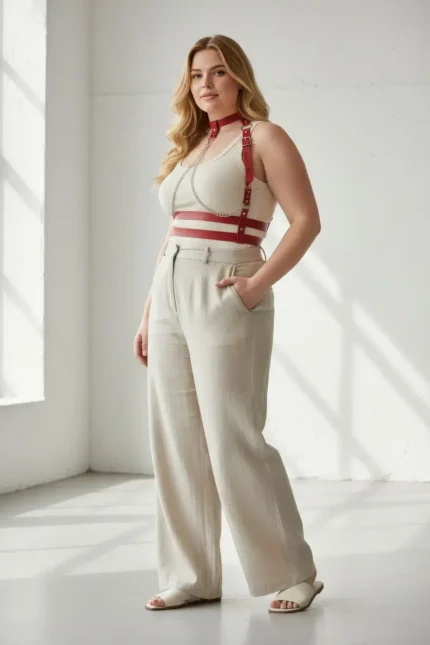 31,9 $Plus Size Red Women’s Leather Harness Body Accessory with Chain Detail – SH824