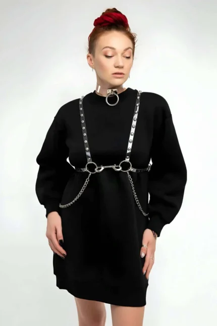 Black Women’s Belt with Multiple Straps and Metal Rings Body Accessory – SH1053