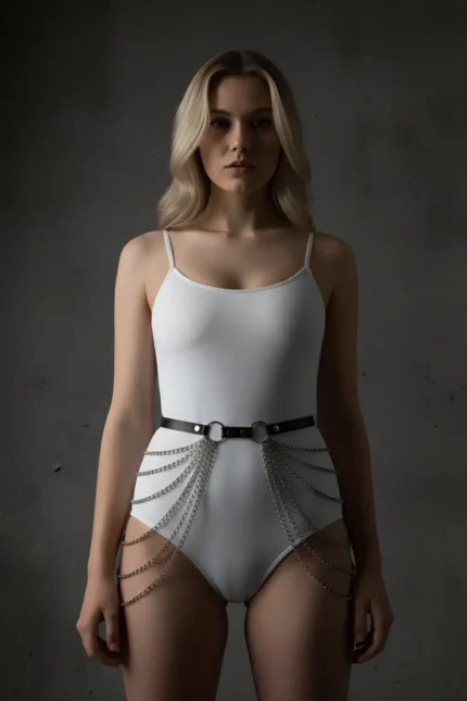Black Women’s Leather Belt with Cross Strap and Shoulder Detail – SH996