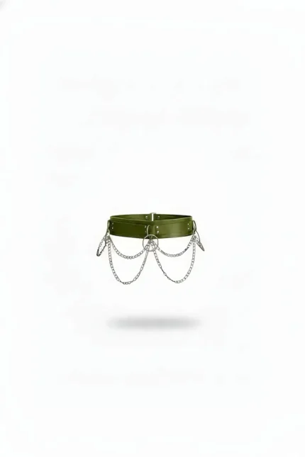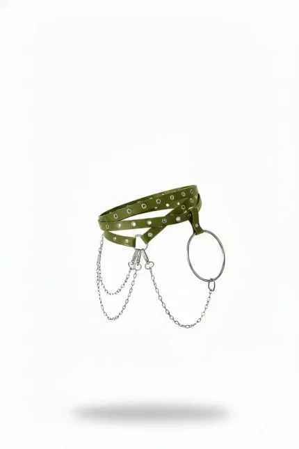 Khaki Women’s Belt with Chain Detail and Metal Ring Accessory – SH621
