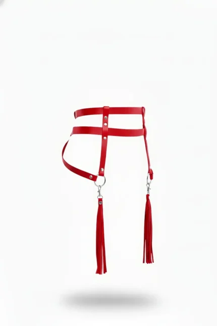 Red Women’s Belt with Tassel Detail, Multiple Straps, Leather – SH645