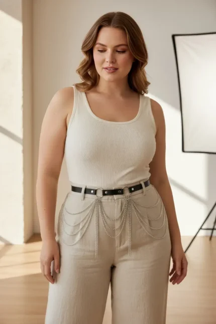 Plus Size Black Women’s Layered Belt with Chain Detail Outfit Complementary – SH729