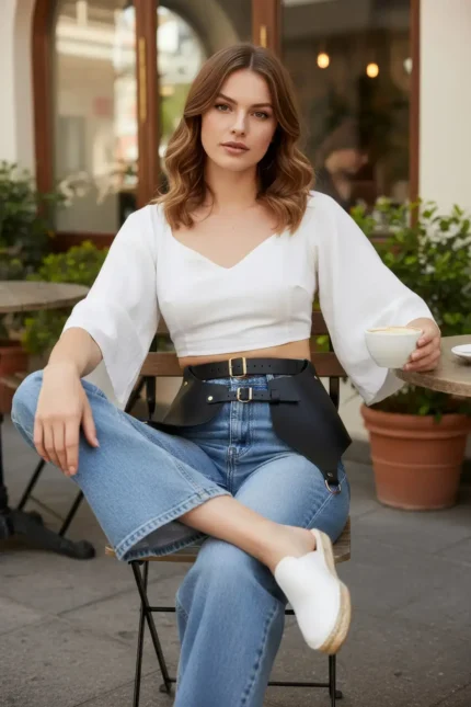 Black Women’s Belt, Faux Leather, Body Buckle Detail – SH1199