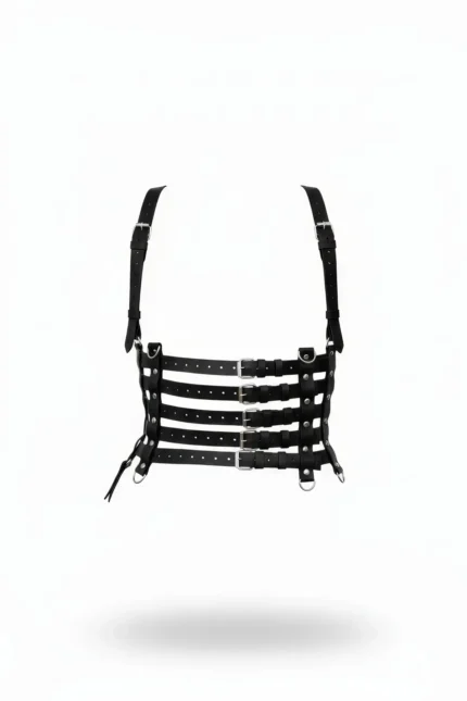 Black Women’s Leather Belted Multi-Strap Shoulder Detail Corset – SH630