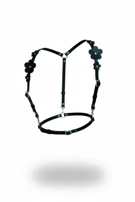 Black Women’s Belt with Floral Detail, Leather Shoulder Strap – SH906