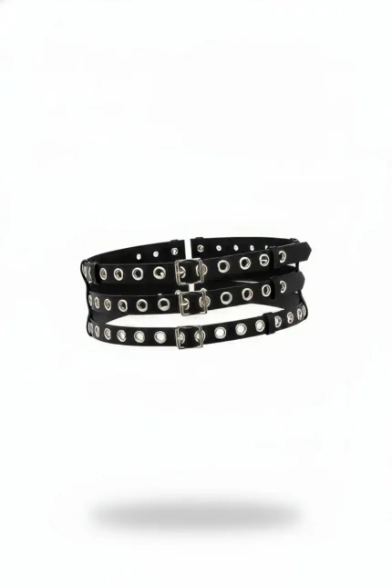 Black Women’s Belt, Leather Effect, Multi-Strap Body Belt – SH1150