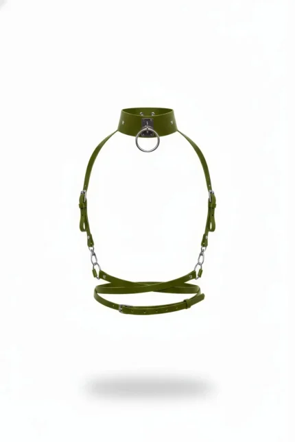 Khaki Women’s Belt with Studded O-Ring Detail Leather Body Accessory – SH644