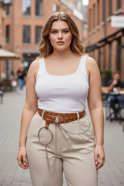 31,9 $Plus Size Women’s Belt with Chain Detail and Ring Embellished Trendy Design – SH731