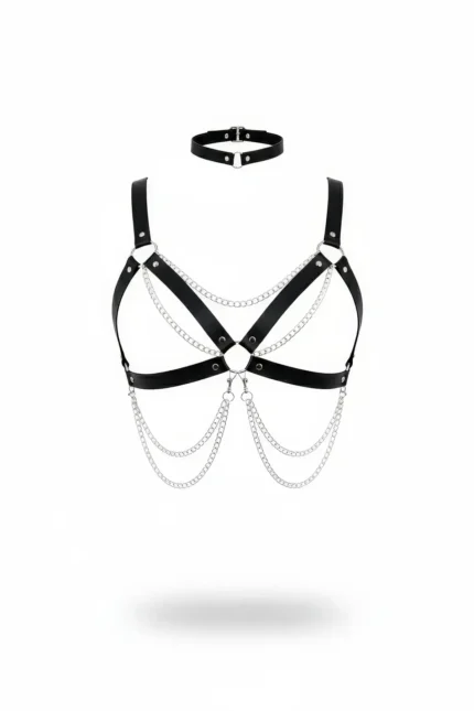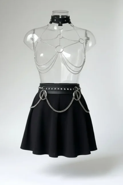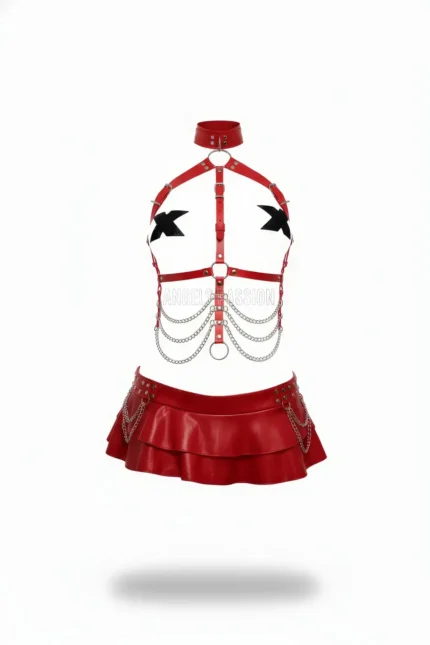 Red Women’s Leather Body Harness with Chain Detail – SH531