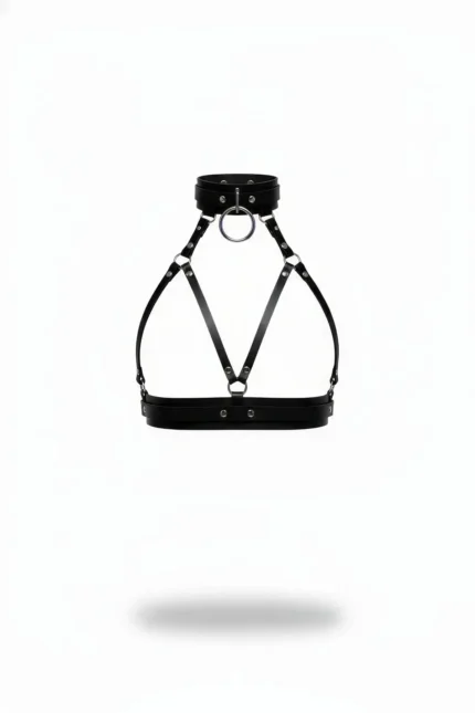 Black Women’s Leather Belt with Body Ring Detail Accessory – SH1334