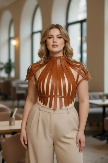 70,9 $Plus Size Women’s Belted Shoulder Strap Corset Design with Stud Detail – SH1257