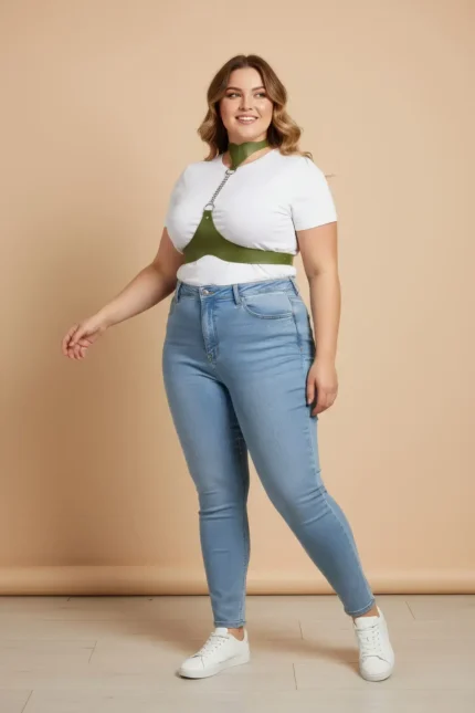 33,9 $Plus Size Khaki Women’s Leather Belt Harness with Chain Detail Body Accessory – SH1265