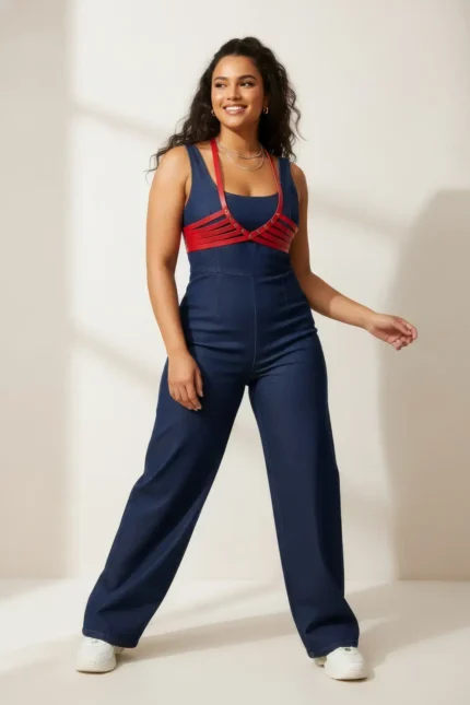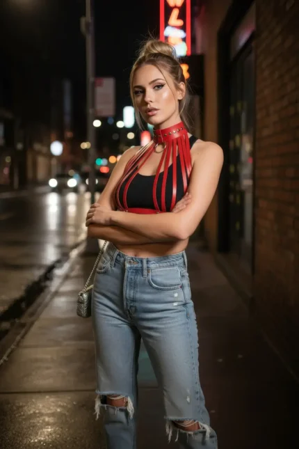 Red Women’s Denim Belt with Metal Ring Detail and Chain – SH621