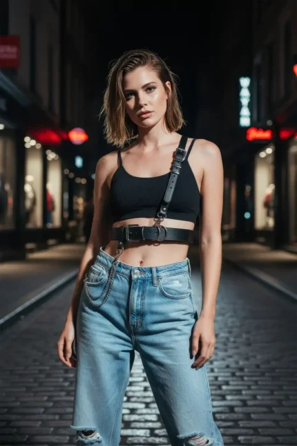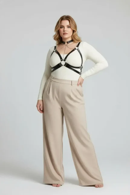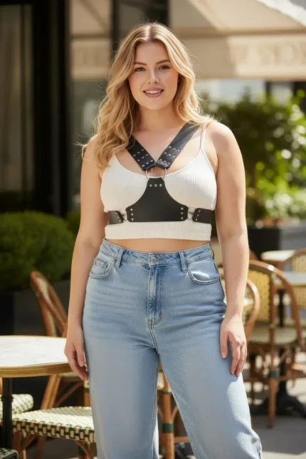 28,9 $Plus Size Black Women’s Leather Harness Body Accessory with Chain Detail – SH797