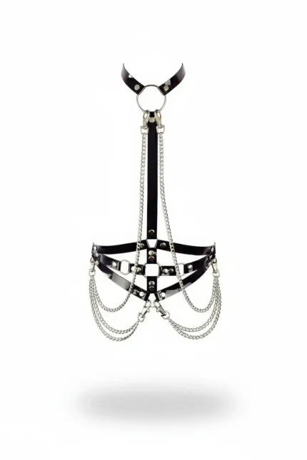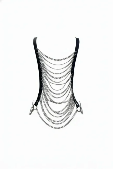 Black Women’s Faux Leather Body Accessory with Belt Chain – SH10