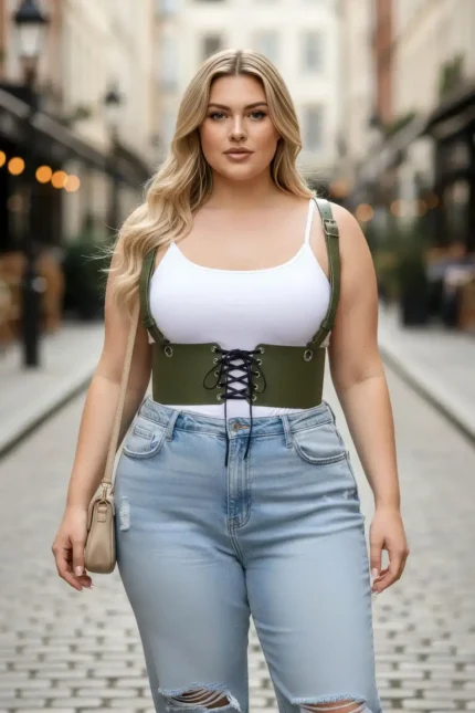 35,9 $Plus Size Khaki Women’s Belted Shoulder Strap Tie-Up Corset Style – SH1429