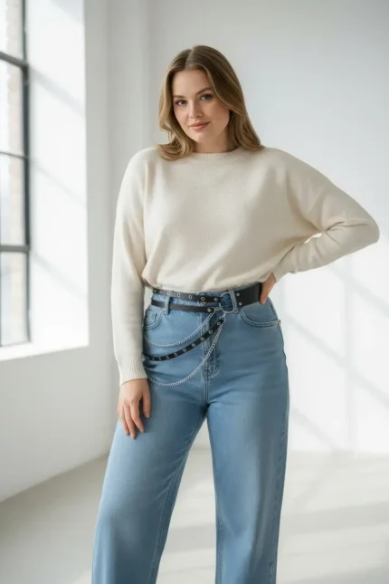 33,9 $Elegant Leather Belt with Shoulder Detail and Chain – SH620
