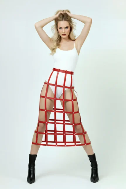 25,9 $Red Women’s Belt, Long, Cage Detail, High Waist – SH1396