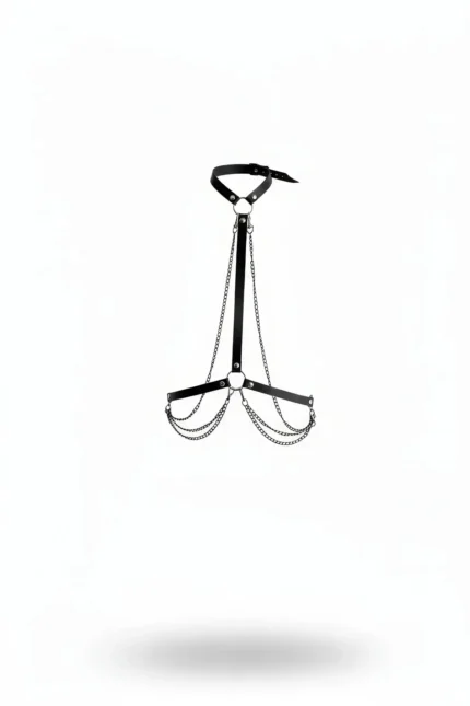 Black Women’s Leather Body Accessory with Belt and Chain Detail – SH741