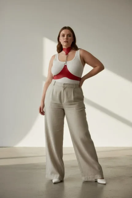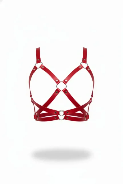 Plus Size Red Women’s Leather Body Accessory with Belt and Chain Detail – SH1265