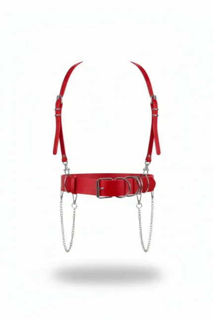 Red Women’s Leather Belt with Multiple Buckles Body Accessory – SH969