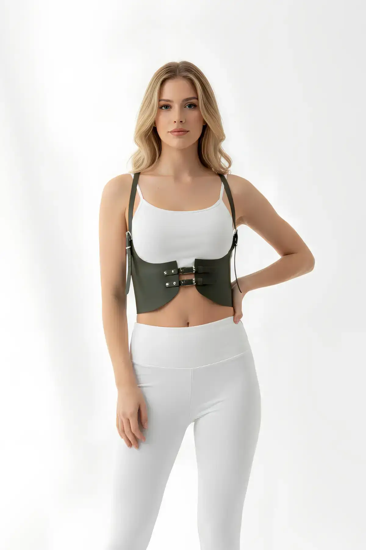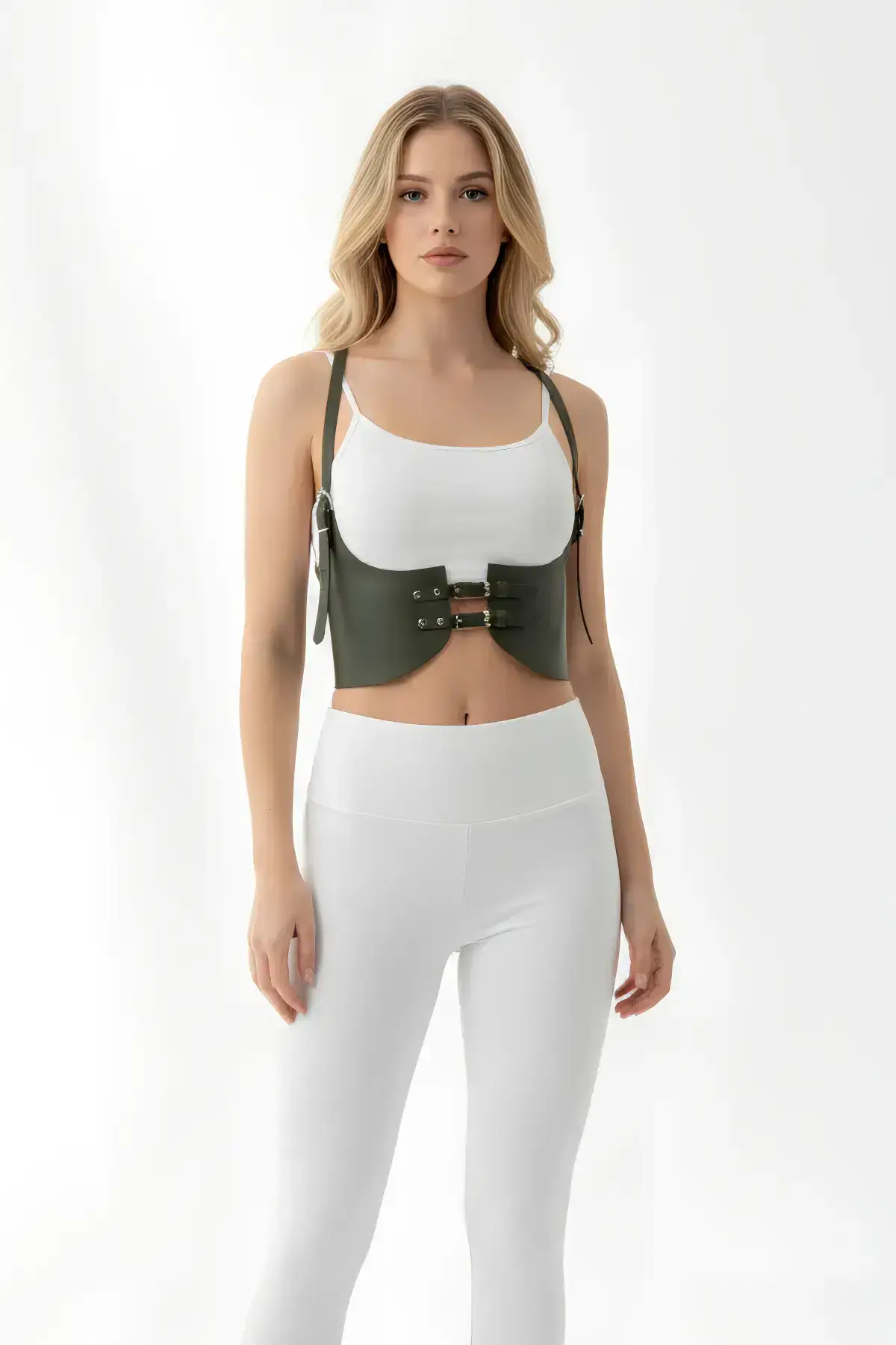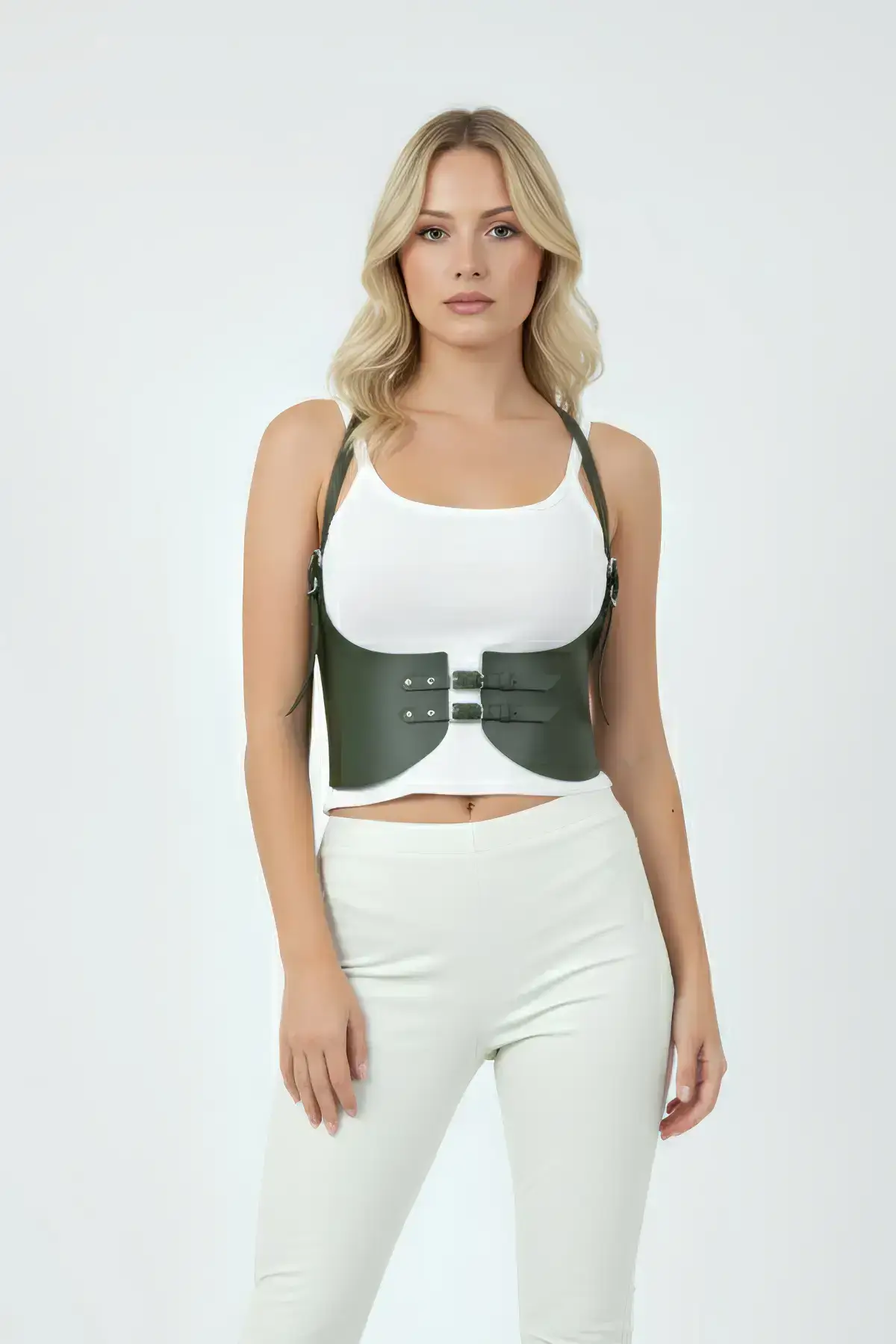 Elevate any outfit instantly with this stunning wide khaki corset belt. Crafted from premium faux leather, this piece is designed to dramatically cinch your waist, creating a coveted hourglass silhouette that commands attention. Its structured, wide design offers a modern, edgy take on a timeless accessory, making it a powerful addition to your wardrobe.