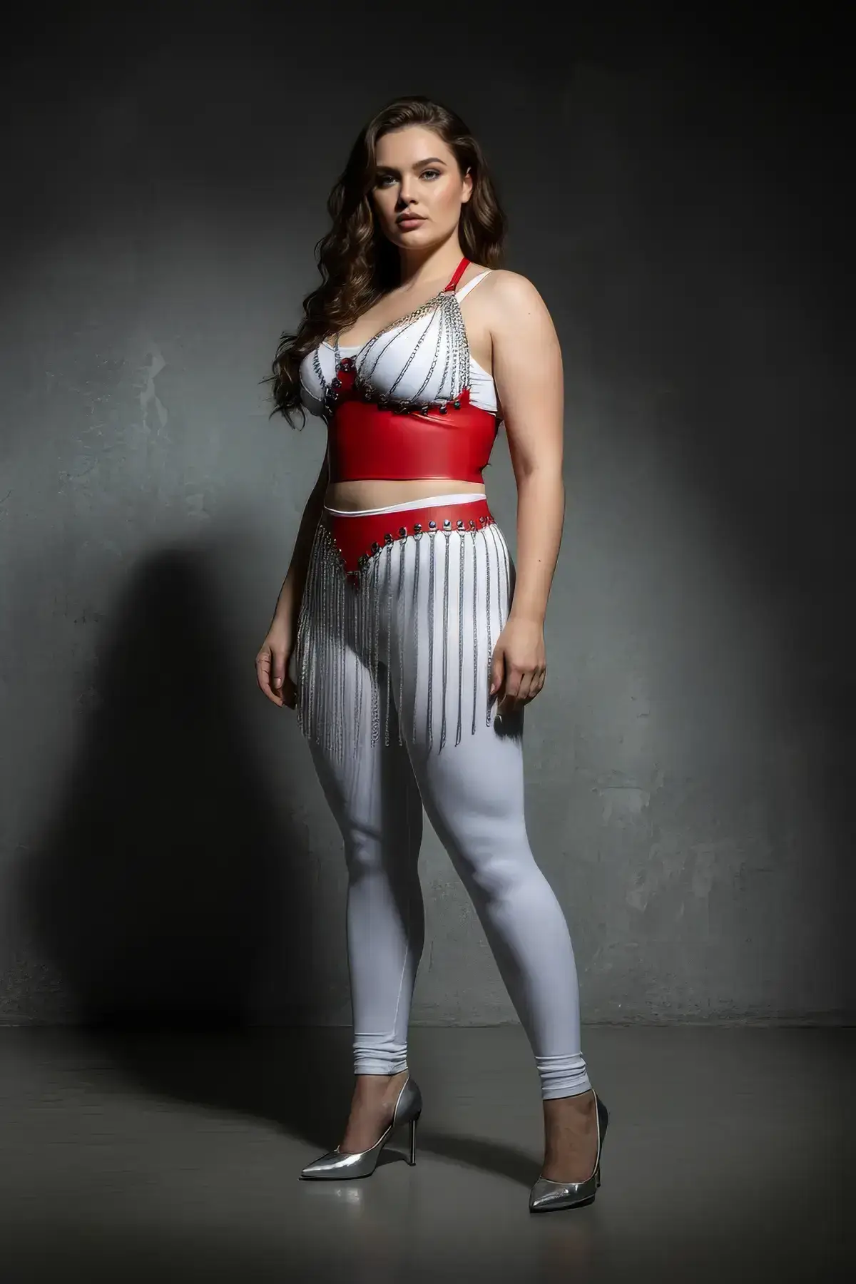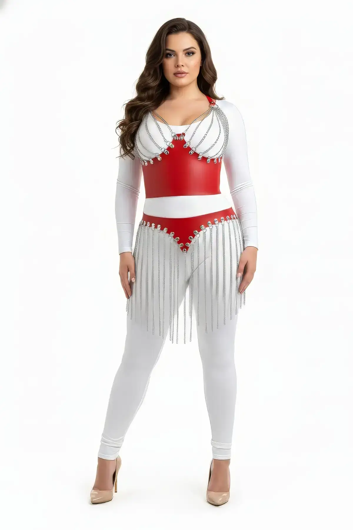 Step into the spotlight with the ultimate Plus Size Red Skirt and accessory set. This head-turning piece features a vibrant, high-waisted red mini-skirt base paired with an edgy black faux leather harness. The accessory is the centerpiece, showcasing striking silver hardware and long, flowing Chain Tassel details that sway with every movement, creating a truly dynamic look perfect for stage, club, or festival wear. This two-piece design ensures you get a distinct, layered aesthetic instantly.