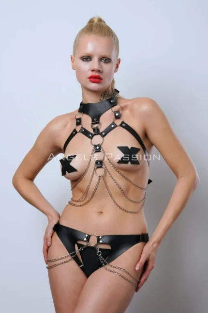 41,9 $Black Harness Set Leather Chain Detail Garter Body Accessory – SH1040