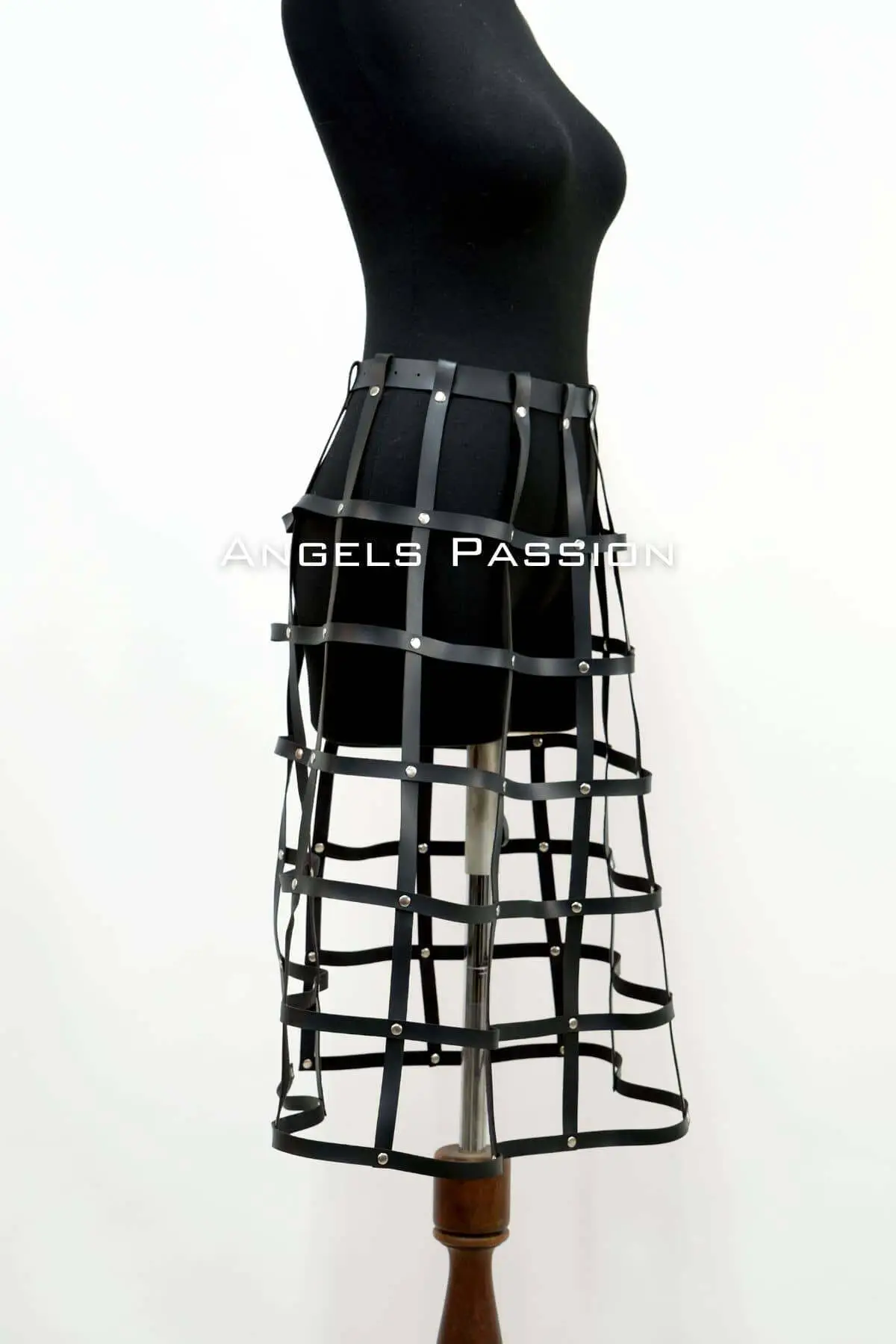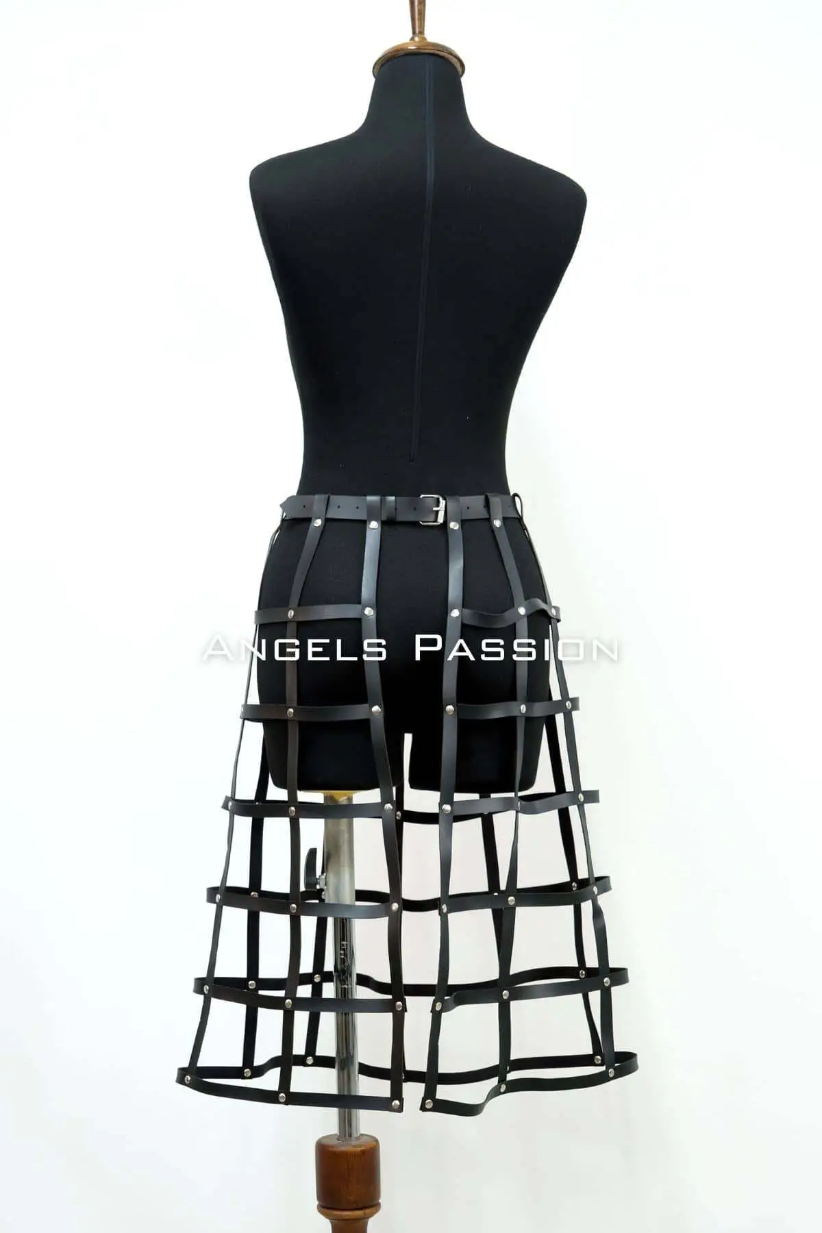 Experience premium construction designed for dynamic movement and a personalized fit. The front is dominated by a striking cage structure, crisscrossed with vertical and horizontal straps, and further enhanced by a functional corset-style lace-up detail. This level of detail elevates it beyond a simple Cosplay Skirt into genuine fetish wear. Every strap is fully adjustable, secured with durable buckles, ensuring the high-waisted fit hugs your figure perfectly. The smooth, easy-to-clean material offers the glossy appearance of patent leather, making it ideal for club nights or provocative photoshoots.