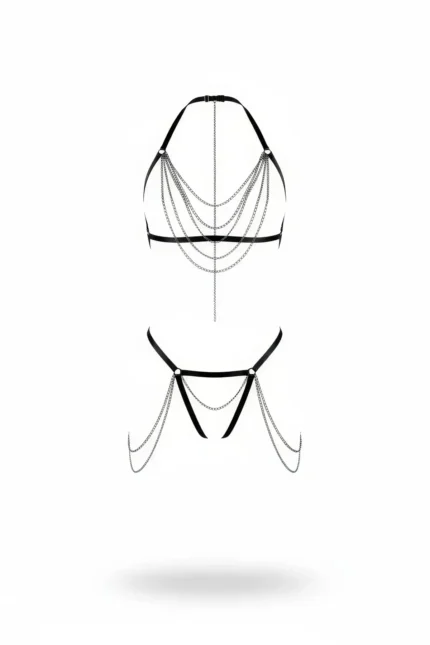 Black Harness Set with Multi-Layer Chain Detail – SH1065