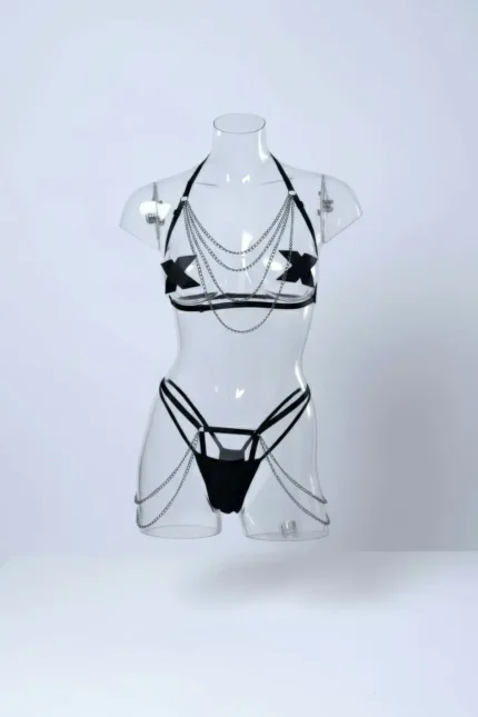 Black Harness Set with Chain Detail Body Accessory – SH1065