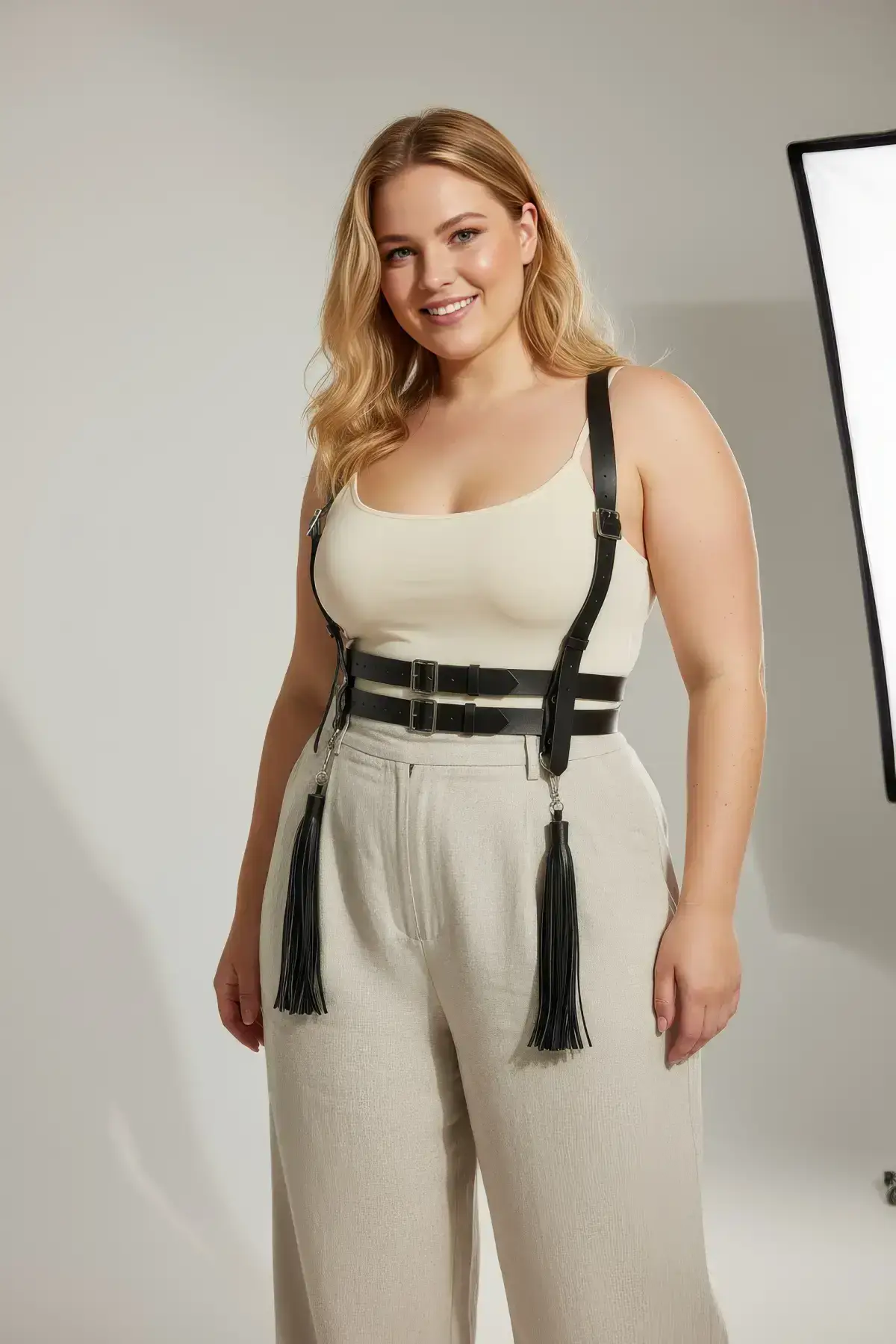 Unleash a powerful silhouette with this plus-size corset-style body accessory. This stunning piece is designed to sculpt and celebrate your shape, featuring wide, adjustable straps that cinch the waist for a dramatic hourglass effect. It’s the ultimate statement piece, instantly transforming simple attire into a head-turning ensemble.
