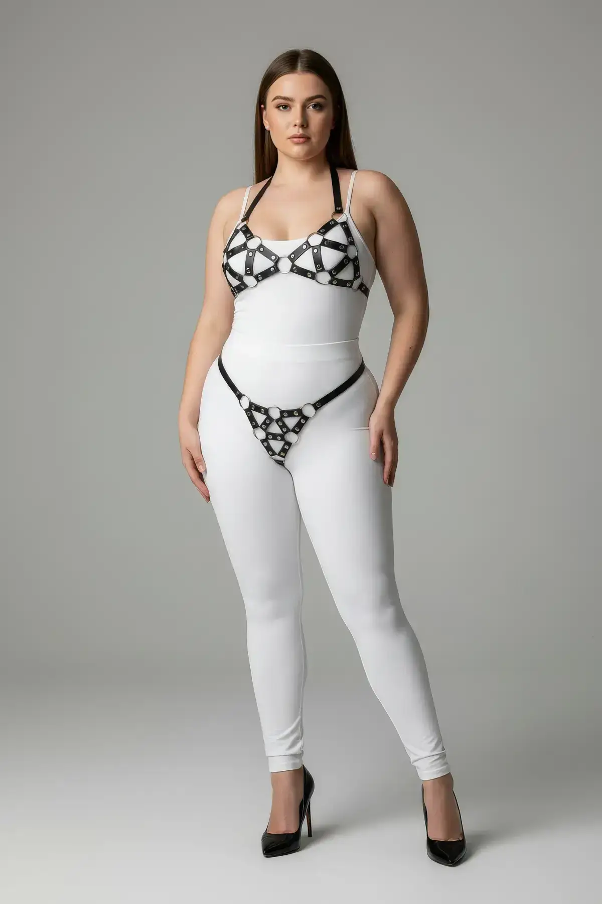 Experience unparalleled comfort and control with our specialized sizing. This Plus Size Black Women’s Harness Set is not merely an upsized version, but a meticulously engineered design featuring extra-wide, sturdy straps that provide optimal support and a flattering fit. The exceptional adjustability ensures the entire structure conforms perfectly to your unique body shape. From the shoulders down to the thigh components, you can tighten or loosen the buckles to create your ideal look, making this the perfect Body Harness for nights out or private fantasy play.