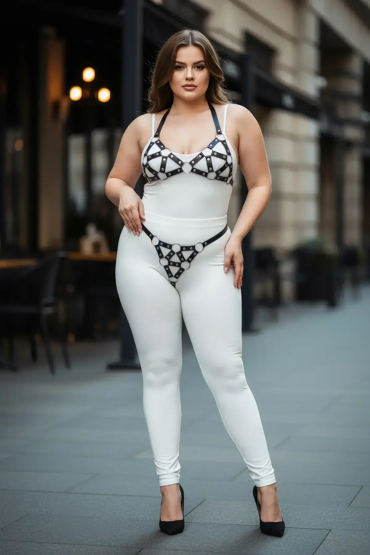 Beyond its use as a Sexy Leather Accessory, this piece offers versatile styling options. The Multi-Strap Design instantly transforms any outfit, adding an element of edgy sophistication over a simple dress or shirt. This complete Harness Set delivers high fashion impact and confident allure. The quality craftsmanship ensures durability, making this a lasting investment in your accessory collection for years of glamorous use.