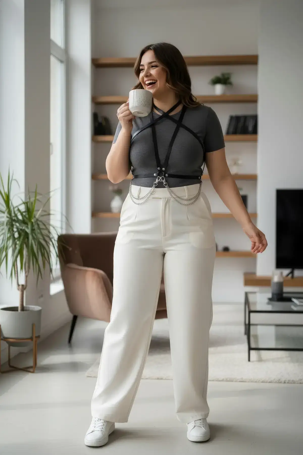 This accessory is more than just a piece of jewelry; it’s a structural masterpiece. Featuring adjustable straps and an integrated belt, it provides a secure and comfortable fit tailored for fuller figures. The silver chain detail adds an industrial chic touch, making it a perfect piece to layer over a simple dress or a lingerie set. Explore our full collection of Women’s Harness pieces to find your next obsession.