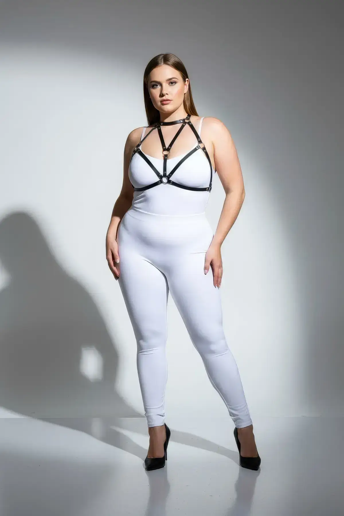 The sh244 harness transcends typical accessories, functioning as a powerful statement piece perfect for adding an assertive, goth outfit vibe to a simple dress, oversized tee, or bustier. The wide strap construction is inherently flattering, offering a comfortable fit that moves with you. The adjustable nature of this Plus Size Black Women’s Leather Chest Harness ensures it conforms perfectly to diverse body shapes, celebrating all sizes. Explore more structured pieces in our full collection of Women’s Harness selections.