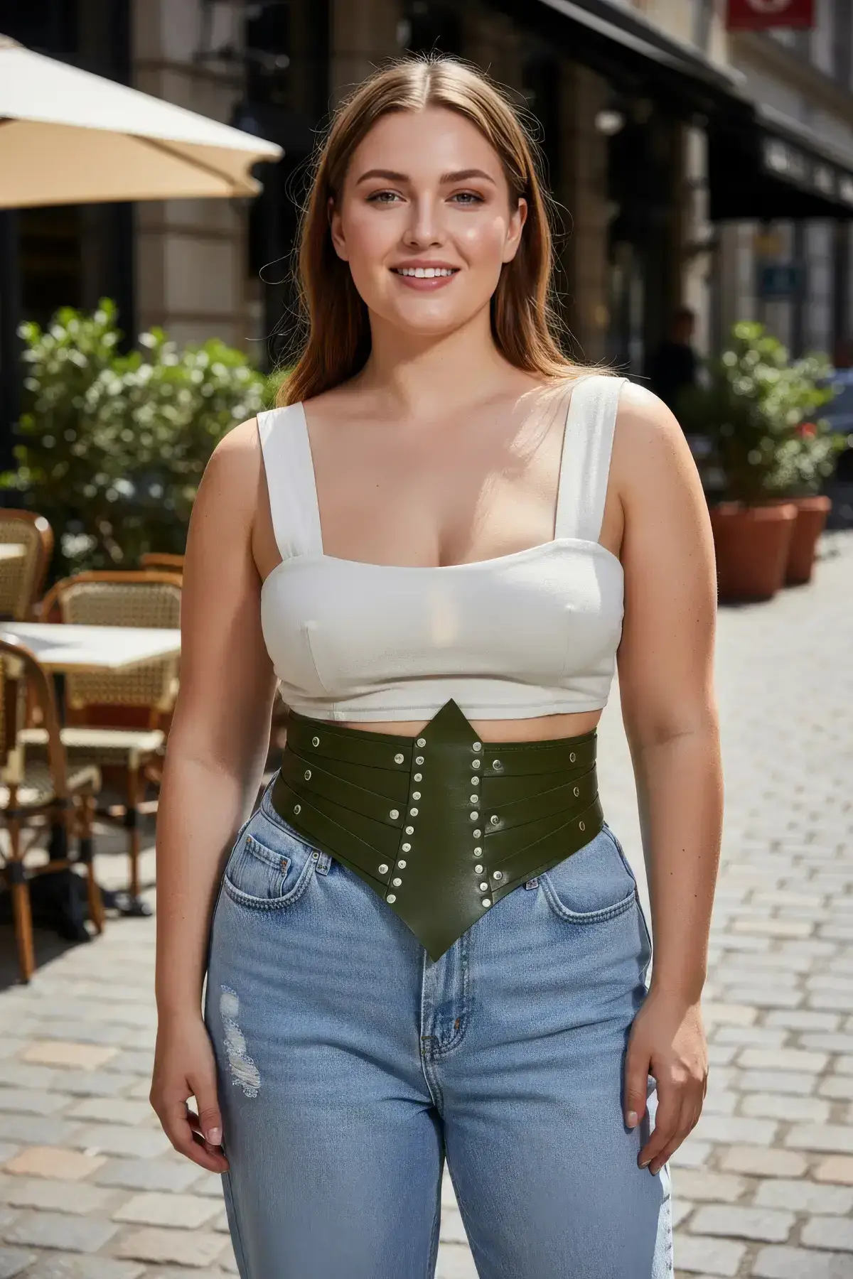 Redefine your silhouette with the plus-size khaki corset belt, a statement piece built to celebrate your curves. This thick waist accessory instantly transforms any mundane outfit into a runway-ready look, offering both support and style. The earthy khaki tone offers a versatile, military-chic aesthetic that pairs effortlessly with everything from a simple black dress to complex layered separates. Forget the flimsy accessories; this belt is the foundation for an unforgettable ensemble.