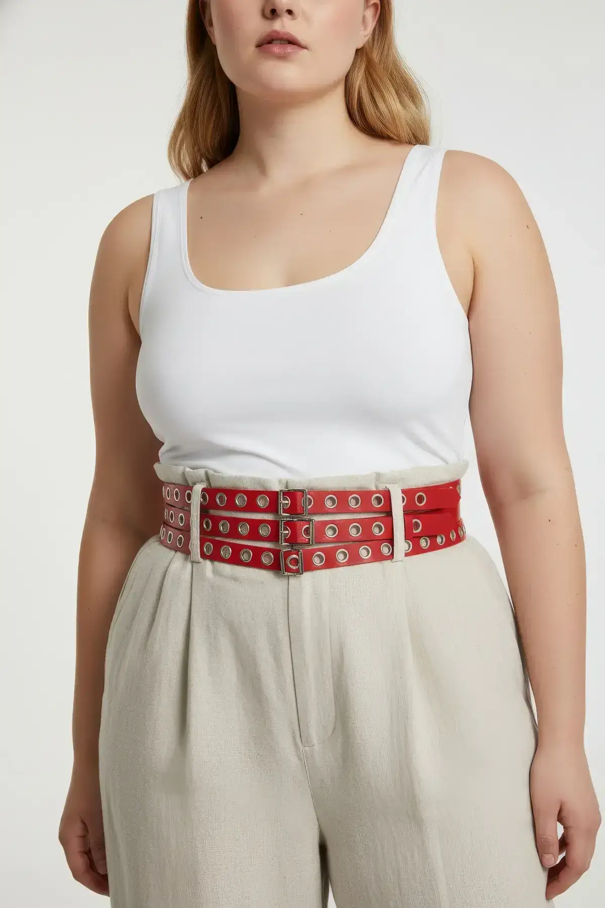 Plus Size Red Women’s Belt, Thick Leather Waist Accessory with Multiple Buckles – SH641