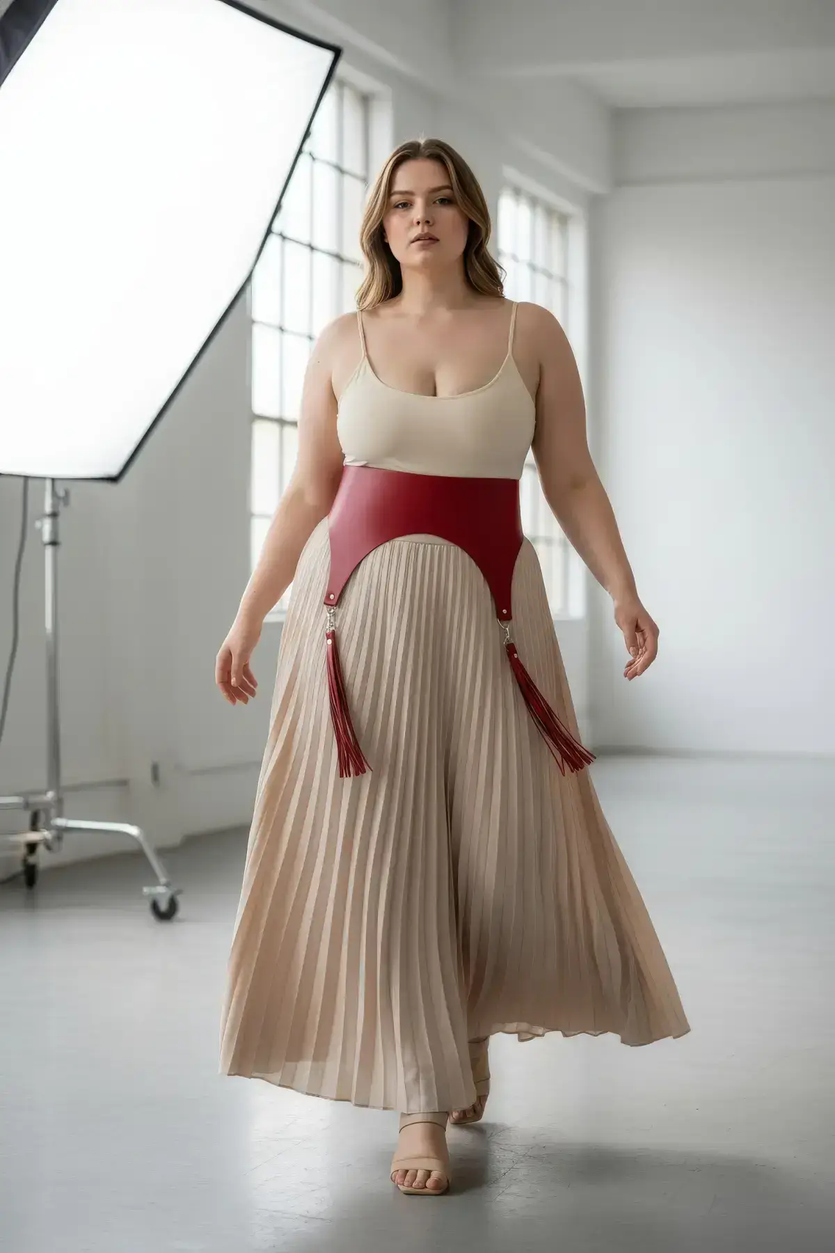 The built-in adjustable belt system allows you to effortlessly cinch and define your waistline, providing that coveted hourglass silhouette. The playful tassels add a dynamic, flirty touch that moves with you, ensuring every glance is captivating. Pair this corset with a contrasting Leather Skirt for a dominant outfit, or wear it under a blazer for a thrilling secret.