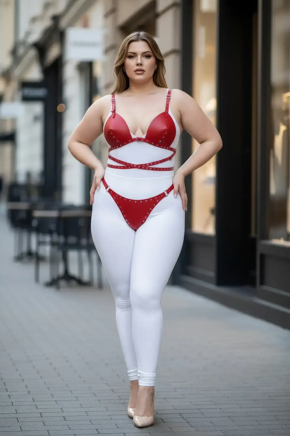 Define your curves with this stunning red harness set today.