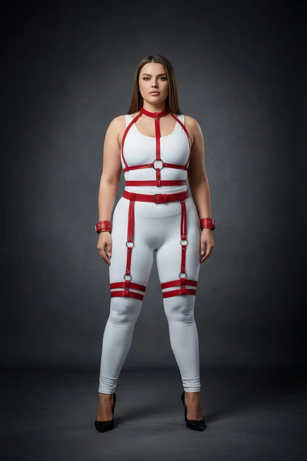 Plus Size Red Women’s Harness Set with Garter and Ring Details – SH697